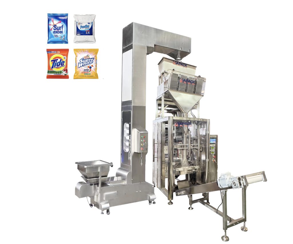 Mesin unit iki minangka desain khusus kanggo kemasan produk granula kaya deterjen kacang buncis bubuk gula millet lan liya-liyane .Kabeh awak mesin digawe dening SUS304 .Kalebu mesin ngisi bobot produk, tas VFFS sing mbentuk mesin kemasan sealing, platform siji set kanggo mesin timbang lan conveyor output kanggo nransfer tas rampung.