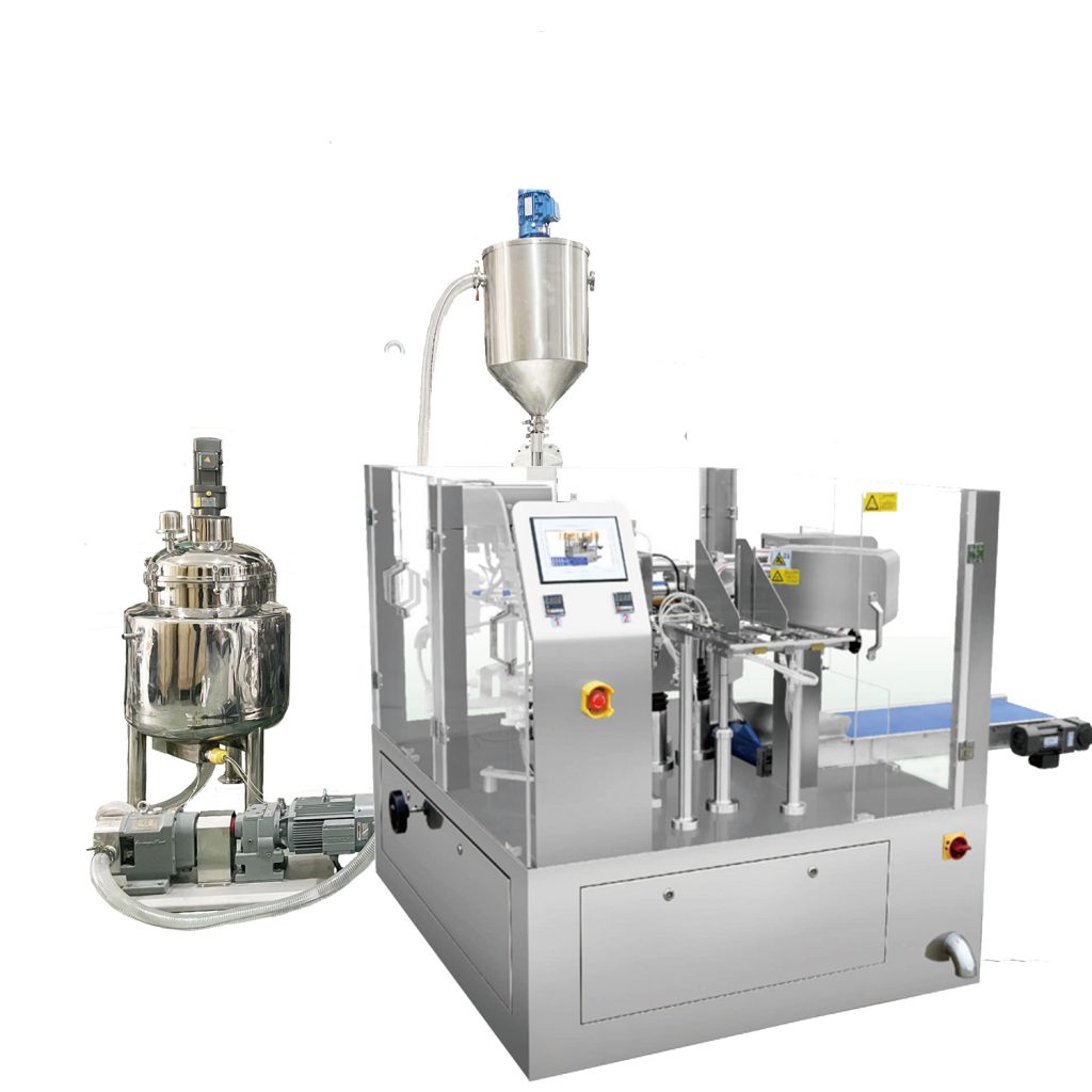 Dilengkapi karo filler piston minangka sistem dosing, wis digunakake kanggo ngemas cairan lan tempel, kayata deterjen, pelembut, sampo, gel mandi, susu, banyu, jus, kecap kedelai, minyak, kecap kecap, mayonnaise lan liya-liyane.