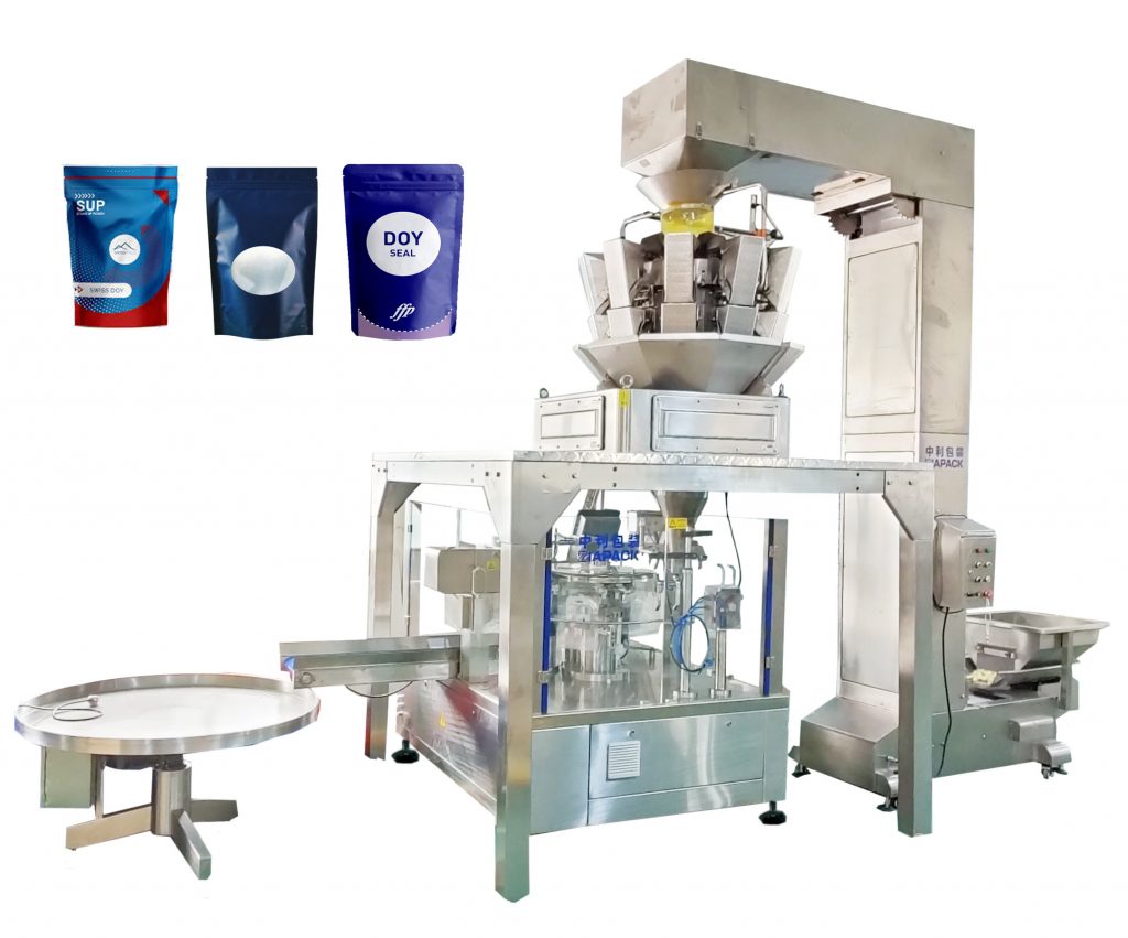 Pécap sing wis diisi lan mesin segel, sing diwangun saka 8 stasiun kerja kanthi efisiensi lan stabilitas, nekanake paket tas ngadeg, tas zipper, spout bag, lan macem-macem kantong sing wis digawe. Nggabungake sistem dosing sing beda (penggabungan lurus / linear weigher / auger / pengisi piston) lan konveyor sing otomatis ngangkat, dianggo sacara luas ing granula, cairan, lan wêdakakêna.